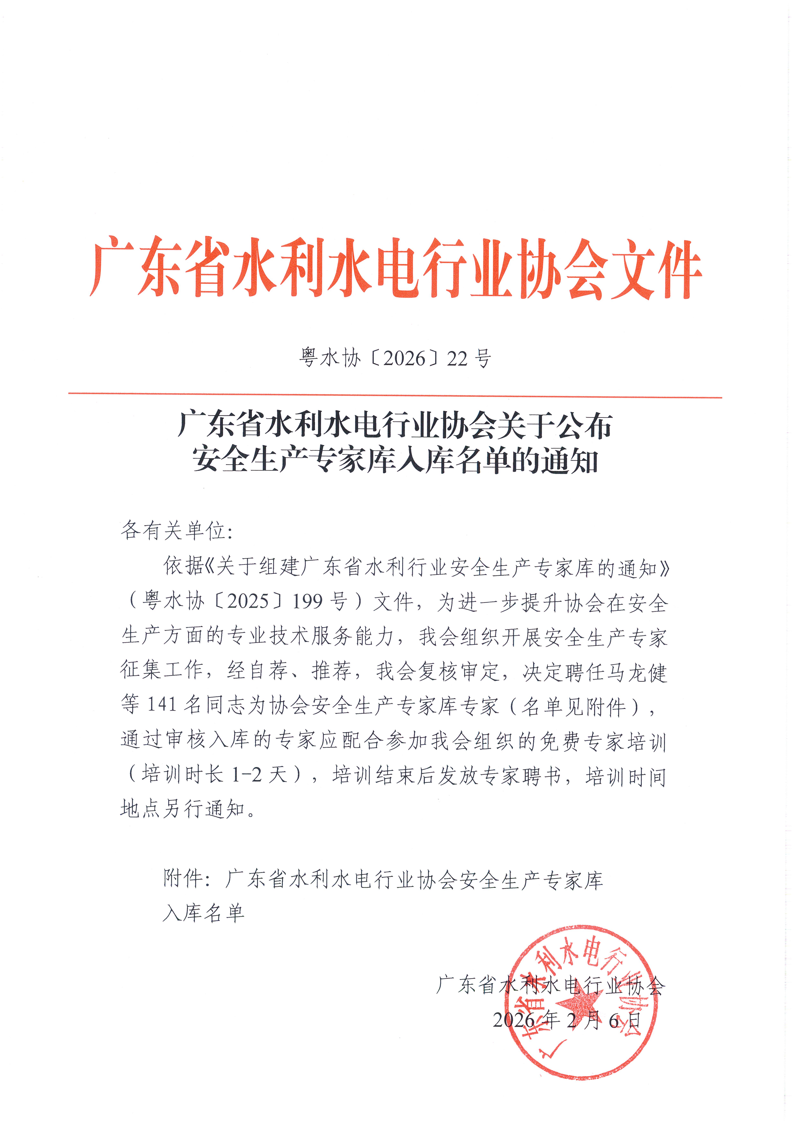 广东省水利水电行业协会关于公布安全生产专家库入库名单的通知